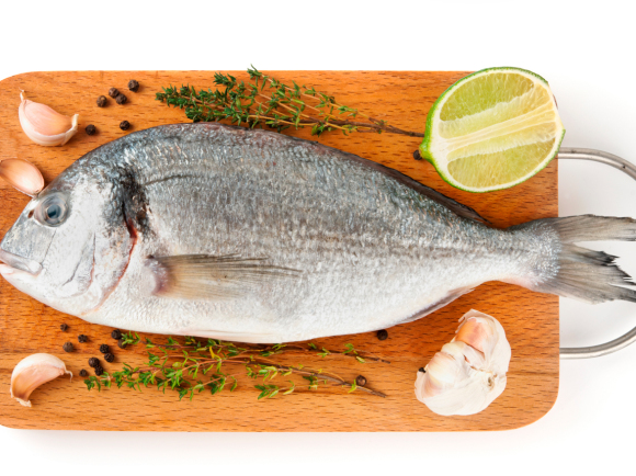 Dorade vapeur, courge au sésame grillé et sa porte de salle de bain à la mandarine.